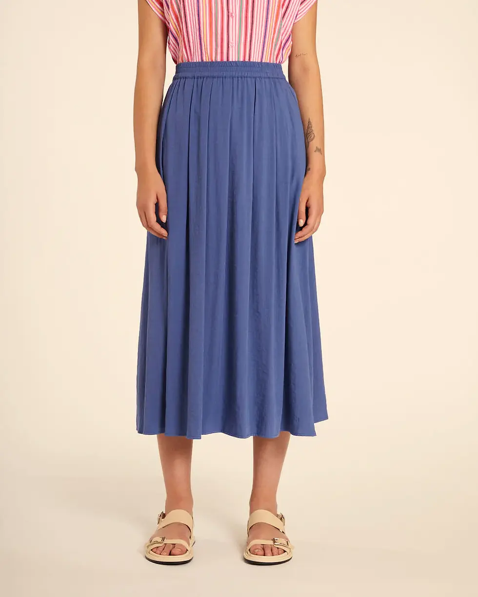 Falda larga rizada azul